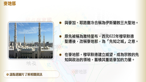麥地那與麥加、耶路撒冷合稱為伊斯蘭教三大聖地。它原先被稱為雅特里布,西元622年穆罕默德聖遷後,改稱麥地那,為「先知之城」之意。