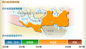 講述穆罕默德死後四大哈里的演變概況。阿布‧巴卡:扭轉穆罕默德去世後的分裂局勢,阿瑪爾和烏玆曼:開始往阿拉伯以外地區擴張,阿里:併吞了波斯薩桑王朝。