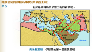 奧米雅王朝並是伊斯蘭的第一個世襲王朝,奧米雅的擴張在732年在都耳的失敗,終止了伊斯蘭在西歐的行動。奧米雅王朝採取宗教寬容政策,但廣大的佔領區由於行政系統的建立,職業類別的產生,伊斯蘭信徒卻日有增加,隨後奧米雅王朝規定阿拉伯語為帝國的正式語言,政府的一切檔案,必須用阿拉伯文書寫,使阿拉伯語成為往後這些地區的共通語言。