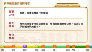 從年表當中了解伊斯蘭世界由570年穆罕默德誕生於麥加,到909年法提米王朝,建都開羅之間的重要記事。