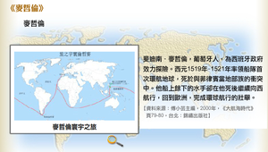 斐迪南.麥哲倫,葡萄牙人,為西班牙政府效力探險。西元1519年到1521年率領船隊首次環航地球,但死於與菲律賓當地部族的衝突中。雖然他沒有親自環球,但他船上餘下的水手卻在他死後繼續向西航行,回到歐洲,完成環球航行的壯舉。