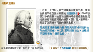 十六至十七世紀,西方國家奉行重商主義。重商主義最早在亞當‧斯密的《國富論》中被提及,他認為這個時期各國透過對殖民地的掠奪和對外貿易的擴張,使財富大量累積,產生了強調資本利益的重商主義。殖民國家運用各種力量與殖民地形成剝削與依附的經濟關係,一切以獲取財富為主,這種經濟型態稱為「重商主義」。