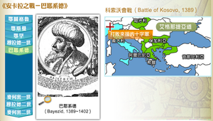 巴耶系德是第四任鄂圖曼君主,繼承地跨歐亞的帝國。科索沃會戰是他的戰功,他沿著艾格那提亞道進攻保加利亞、希臘、塞爾維亞、匈牙利,直到阿爾巴尼亞,隔海與義大利相望;並打敗來援的十字軍,也征服整個安那托利亞。此時,帖木兒帝國崛起於中亞,帖木兒自稱成吉思汗後裔,誓復蒙古族西征建構的版圖,要求鄂圖曼降服臣屬。巴耶系德傳書回諷,1402年,雙方大戰於安卡拉,巴耶系德兵敗被俘,隨即自殺。