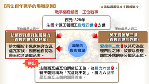 英法百年戰爭的爆發遠因為王位之爭,近因則與利益交錯有關。西元1328年法國卡佩王朝國王查理四世去世,法蘭西瓦盧瓦伯爵腓力與英王愛德華三世加入王位爭奪。而英格蘭自諾曼征服以來,長期佔有法國大片領土。十四世紀初,英格蘭國王統轄法國南部面積廣大、土地肥沃的地區,而法王則一直希望把英國勢力逐出歐洲大陸。兩國王室都要爭奪富庶的佛蘭德爾。