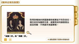 1689年2月6日,英國議會通過決議,宣布威廉和瑪麗共同統治英國,稱「威廉三世」和「瑪麗二世」。此外國會通過權利法案,《權利法案》確立議會和法律制約下的君主統治,即君主立憲制。由於這次政權轉移未經過任何流血衝突,一直被英國中產階級津津樂道,稱之為「光榮革命」,它標誌著英國憲政革命的結束。