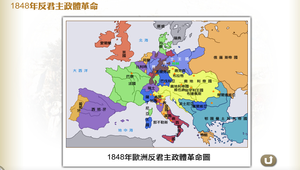 1848年歐洲反君主政體革命風潮始於西西里,波及法國、普魯士、義大利地區及奧地利,但都以失敗或遭到鎮壓而告終。1848年1月,運動首先在義大利的西西里島掀起,法國2月革命以後,擴展到整個歐洲,只有俄國、西班牙、葡萄牙及北歐少數國家未受影響。革命只在法國取得勝利,普魯士、奧地利和義大利卻又回到絕對君主的狀態。