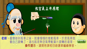 本學習物件主要是從熱空氣和摩擦力的原理來教學生;並且有模擬和詳細的步驟來製作走馬燈。學習結束後;也可利用有趣的評量來測驗自己學習的成果。