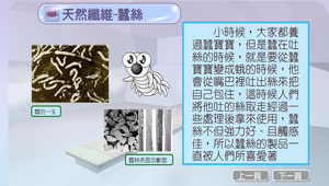 本學習物件主要為認識纖維;從衣服帶學生進入纖維的世界;並讓學生從實際的模擬實驗中;學會分辨纖維的種類。除此之外;最後還有一個小小的活動讓學生複習所學的知識;並幫助老師診斷教學與學生學習的不足點。