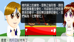 本單元從冰淇淋融化了、情人節的巧克力、烤肉等生活實例來認識熱對物質的影響;並透過「焢窯」、「爆米花」、「煎蛋」等單元來提供學生模擬試驗的機會。