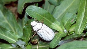 鞘翅目金龜子科,為完全變態昆蟲,生活史需經卵、幼蟲、蛹及成蟲四個階段。是白金龜的北部亞種。體長約為21至36公釐,腹面體色為黑褐色至暗褐色,雄蟲體背具黃灰色鱗片,雌蟲則具白色或乳白色鱗片。成蟲主要出現在5份月低海拔山區。 南投縣自然與生活科技輔導團輔導員 南投縣水尾國小左漢榮主任提供