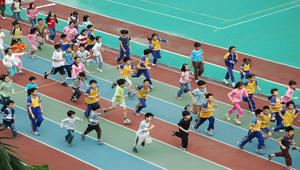 學童一起跑步運動的記錄照片