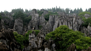 石林是著名的觀光景點,位於中國大陸雲南省的彝族自治區,是典型的喀斯特地形,這裡在二億多年前是海底,沈積了很多的石灰岩,經過地殼運動,上升為陸地,再經長久的風化作用而形成的。可以把它看成是「露天的鐘乳石」。 南投縣自然與生活科技輔導員連建炫提供。