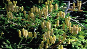 假石松孢子囊穗為3至5個一組,著生在枝條末端的長柄上。 南投縣自然與生活科技輔導團輔導員 南投縣水尾國小左漢榮主任提供