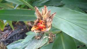 科名-ZINGIBERACEAE 薑科 屬名-HEDYCHIUM 蝴蝶薑屬 種名-Hedychium coronarium Koenig 俗名-穗花山奈;野薑花;蝴蝶薑 南投縣光明國小李春蓮老師提供