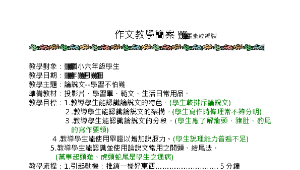 1.教導學生能認識論說文的特色。(學生較排斥論說文) 2.教導學生能認識論說文的架構。(學生寫作時條理常不夠分明) 3.教導學生能認識論說文的分段。(學生應了解龍頭、豬肚、豹尾的寫作要領) 4.教導學生能使用舉證以增加說服力。(學生說理能力普遍不足) 5.教導學生能認識並使用論說文常用之開頭、結尾法。(萬事起頭難、虎頭蛇尾是學生之通病)
