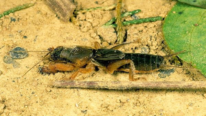 直翅目螻蛄科,體長約30至35公釐,體色為灰黃色至黑褐色,體背具有細毛,頭部較小,前腳特化為挖掘腳,適合挖掘土壤,以植物地下的根部為食,雄蟲夜晚具有趨光性。 南投縣自然與生活科技輔導團輔導員 南投縣水尾國小左漢榮主任提供