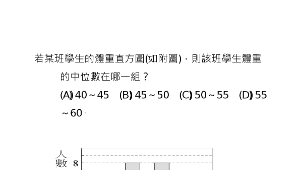若某班學生的體重直方圖,則該班學生體重的中位數在哪一組?