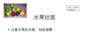藉著聆聽孔融讓梨的故事、迷宮遊戲、認識相反字詞、畫圖,來練習「分水果」這單元。