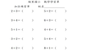一年級加法練習,10以內的計算。