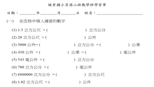 學習內容:N-5-15 解題:容積。容量、容積和體積間的關係。知道液體體積的意義。