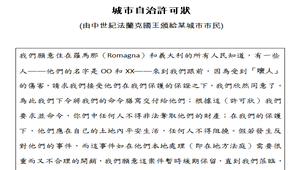 藉由城市自治許可狀,希望學生能對課文產生深刻的印象。