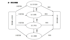 本教學活動的設計緣起於希望藉由短語依次加入形容詞、地點、角色和感覺的擴寫方式,讓學生在遊戲的輕鬆氣氛下學習擴寫,讓學生體會簡單的短語若加入各種元素後,會豐富句子的內容,使句子產生了美感。實施的方法是透過小組討論、聆聽、發表和學習單的習寫等不同的方法學習,以期達成學習擴寫句子的目的。