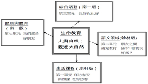 「生命教育─人與自然:親近大然」是以生活課程第一單元拜訪春天第四課「花的訪客」,語文領域第二單元「朋友之間」為主軸,配合健康領域、綜合領域課程,結合班級經營,針對班上孩子行為問題,透過繪本導讀「和我玩好嗎?」,發展出來與綜合活動、語文學習領域、生活課程統整的生命教育教學活動設計。