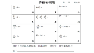 練習分數四則運算,並檢驗學生的語彙及句子重組能力。