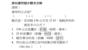 學習內容:N-6-7 解題:速度。比和比值的應用。速度的意義。能做單位換算(大單位到小單位)。含不同時間區段的平均速度。含「距離=速度×時間」公式。用比例思考協助解題。