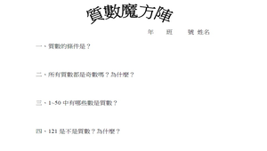 學習內容:N-6-1 20以內的質數和質因數分解:小於20的質數與合數。2、3、5的質因數判別法。以短除法做質因數的分解。