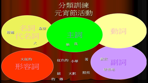 利用ppt巨集使圖文可以在播放中拖曳,模仿電子白板虛擬教具進行『詞性分類練習』