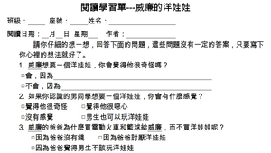 威廉的洋娃娃-閱讀學習單