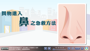 以「異物進入鼻之急救方法」影片(動畫),分別說明異物入鼻之正確處理方法。