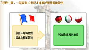 多數史家認為法國大革命宣告了人民主權的誕生,人民不再是君主或獨裁者被動的臣民,他們擁有推翻暴君、掌握自己命運的權力。1880年以後,民族主義的理論與方向更發生了重大轉變,由政治轉向經濟,西方國家挾著工業革命優勢演變成帝國主義侵略者。民族主義如雙刃劍,正面能團結民氣、助長文化,而負面也會傷害人權、損及其他民族的利益。