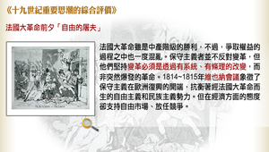 法國大革命雖是中產階級的勝利,不過,爭取權益的過程之中也一度混亂。保守主義者並不反對變革,但他們堅持變革必須是透過有系統、有條理的改變,而非突然爆發的革命。1814~1815年維也納會議象徵了保守主義在歐洲復興的開端,抗衡著經法國大革命而生的自由主義和民族主義勢力。但在經濟方面的態度,卻支持自由市場、放任競爭。
