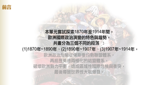 從普法戰後德國統一的1871年,到1914年的塞拉耶佛事件,這段期間,一般視為第一次世界大戰的前奏;在歐洲歷史的分期,則被稱為「新帝國主義時代 」。