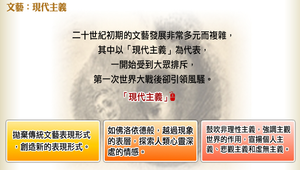 現代主義鼓吹非理性主義,強調主觀世界的作用,宣揚個人主義、悲觀主義和虛無主義。
