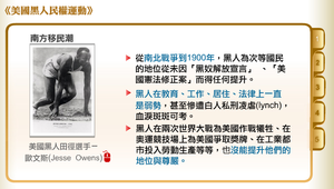 隨著南方黑人第一次與第二次世界大戰期間大批遷徙北方工業城市就業,他們的藍調與爵士樂逐漸受到白人社會欣賞。20世紀前期美國黑人政治意識覺醒發生,黑人民權領袖包括杜波伊、馬丁路德‧金恩挺身而出。1954年美國頒行「廢除種族隔離教育」政策,桃樂絲申請轉入原先專屬白人的學校就讀卻遭叫罵,見證當時白人暴力威脅黑人民權。1968年4月4日金恩被暗殺,出殯當日詹森總統宣布全國降半旗向這位民權領袖致敬。2008年11月,黑人參議員歐巴馬當選美國第44任總統,為第一任黑人總統,見證了美國黑人民權40年的發展。