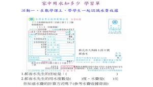 利用水費收據,實際了解家裡用水狀況,並學習相關計算。