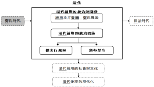 清朝打敗鄭氏,取得臺灣的統治權。清廷統治臺灣的主要目的是為了防止臺灣成為反清的基地,因而在初期制定了種種渡臺限制,但是卻無法阻擋福建、廣東移民,為謀生活而遷移入臺的現象。