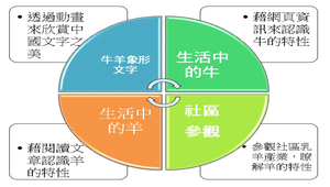 本教案設計以「象形文字」與「牛羊」為主軸,藉著象形文字的介紹,引發學生的動機,同時也瞭解中國文字之美,接著認識社區的動物,瞭解動物對人類的重要性,進而培養學生愛護動物與尊敬動物的情感。