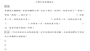 許多人都視作文教學為畏途,許多孩子也害怕寫作,但是其實只要有足夠的引導,孩子就能寫出有模有樣的作文。一開始老師可以介紹英國詩人彌爾頓,讓孩子體會他詩中對於失明所感受到的痛苦。正文內容可以寫出自己近視的經過,分享近視的不便經驗,而沒近視的學生可寫出自己保護勢力的絕招。最後使用排比句,讓孩子想一想,生活之中有哪些重要或令人快樂的事一定要看得見才能做。