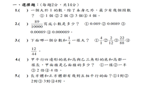 五年級數學試卷