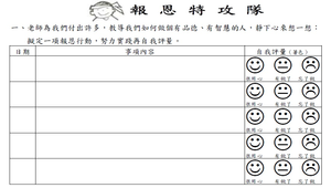 學習表現:3b-Ⅲ-1 持續參與服務活動,省思服務學習的意義,展現感恩、利他的情懷。