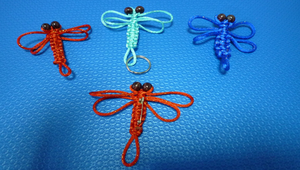 利用中國結的編法來編織一隻蜻蜓,不止可以做成別針,亦可做成鑰匙圈。