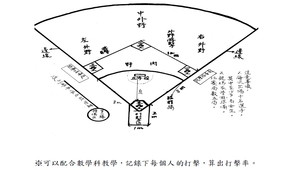 認識足壘球規則、場地、計分方式。配合數學科百分率單元,記錄自己每一次上場打擊結果,並算出自己的打擊率。