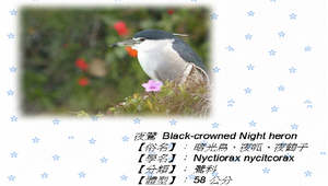 生物教材-介紹夜鷺、小彎嘴畫眉、八色鳥。