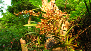 簡介:附生蘭;台灣全島海拔1000公尺以下均有分佈。花有香味,花期四至六月,喜生長於溪谷兩側大樹上。