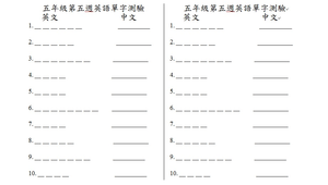 固訂的英語單字測驗小考格式可供列印