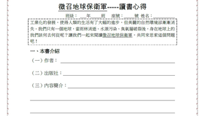 工業化的發展,使得人類的生活有了大幅的進步,但美麗的自然環境卻漸漸消失。我們只有一個地球,當雨林消逝、水源污染、臭氧層破裂後,身在地球上的我們該何去何從呢?讓我們一起來閱讀徵召地球保衛軍,共同來思索這個問題吧!